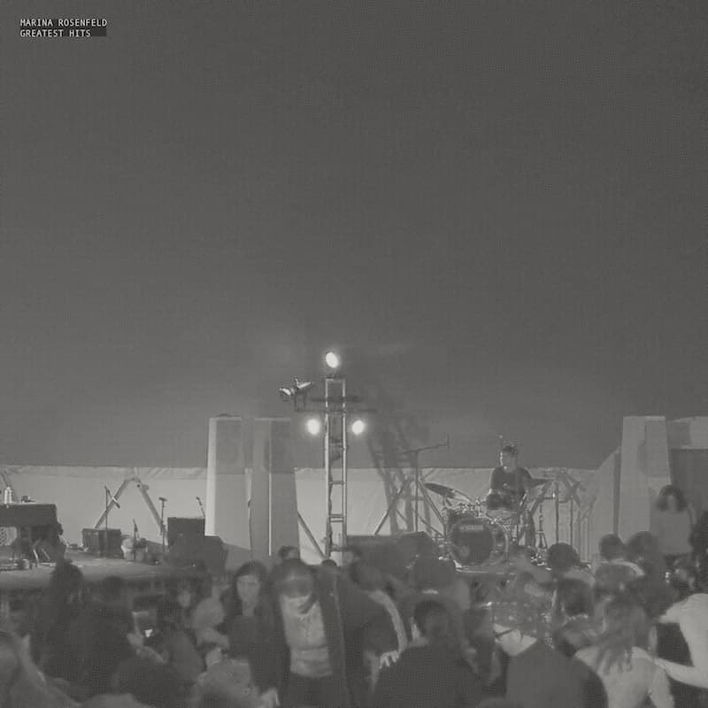 The following year, this playlist served as the score for GREATEST HITS: a reproduction, which premiered as a duo between Rosenfeld and percussionist Greg Fox in the rotunda of the Guggenheim Museum in New York, and again in 2019 at MoMA PS1 accompanied by Fox and percussionist Eli Keszler — the live recordings of which serve as the primary materials of this LP and the album cover is a photograph from this concert. Rosenfeld translated the listed date, side, and time of the playlist notation into explicit directions for Fox and Keszler to repeat, pause, introduce dynamics into, or simultaneously integrate aspects of the score. The players’ percussive movements are directed to feature “spirals” - circular patterns from high to low frequencies; “slopes” - oscillating patterns at high to low velocities; “vectors” - expanding or contracting patterns rolls, double rolls and hits; and, “lines” - fluid or stochastic patterns wavering in frequency across a line drawn on a surface.